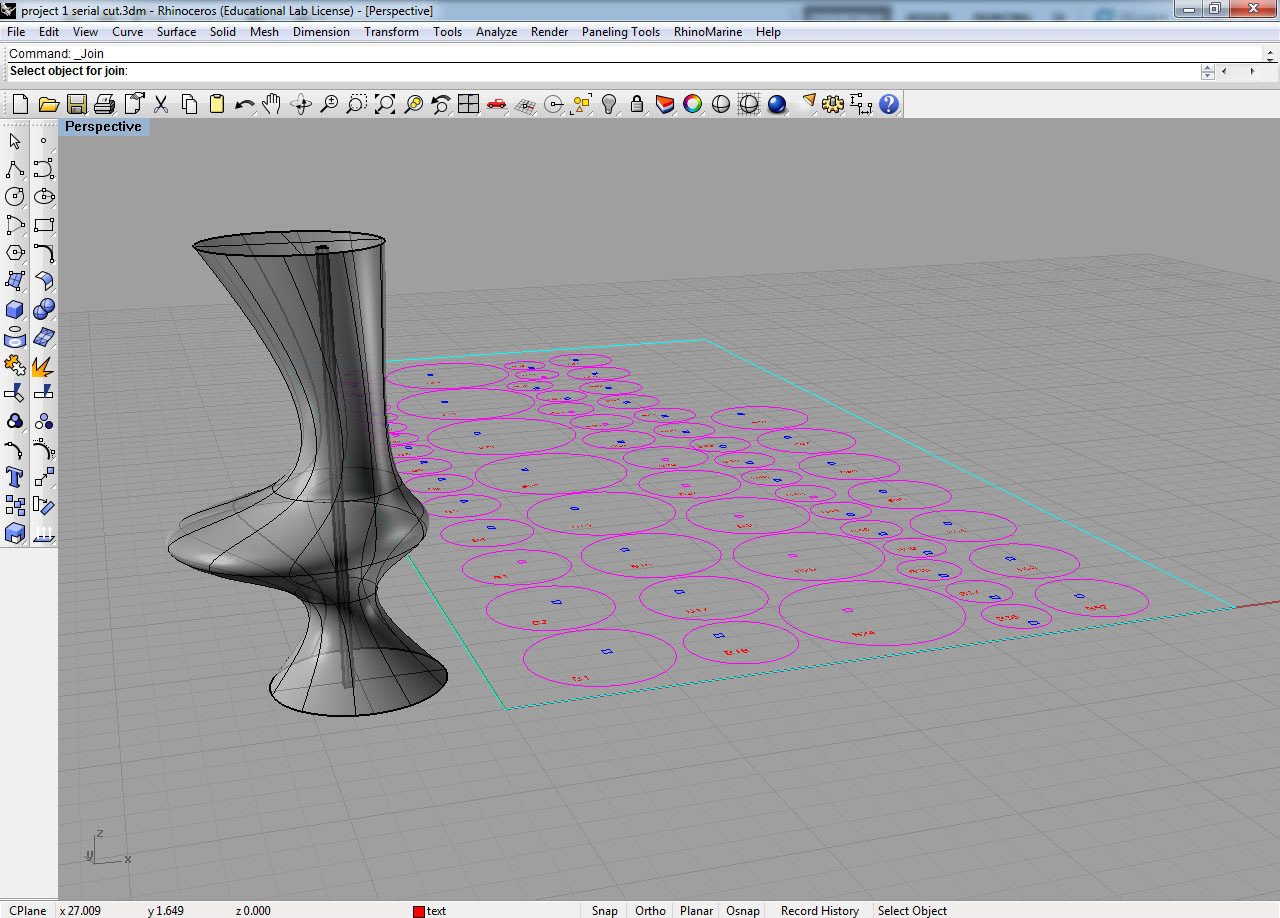 This sculpture was an investigation into lasercuting serial cut peices in order to fabricate an organic form. The organic form was designed in Rhino. A Grasshopper script was used to serial cut the form and label the peices. Each peice was lasercut and glued together. After the peice was grinded and sanded smooth, it resembeled the NURBS model origionally designed in Rhino.